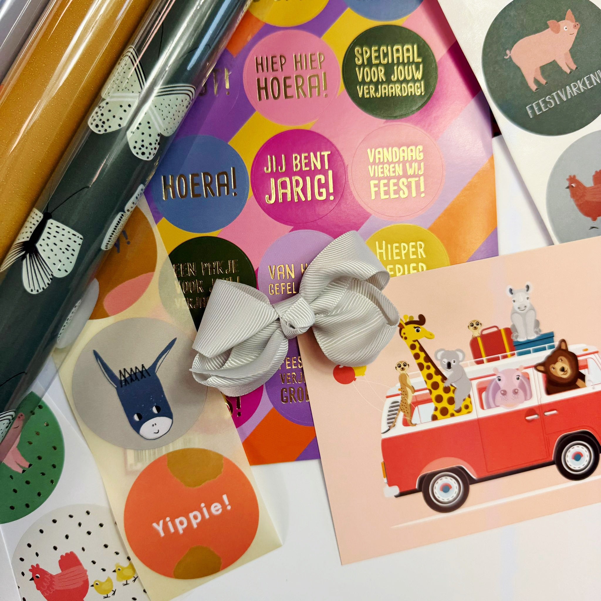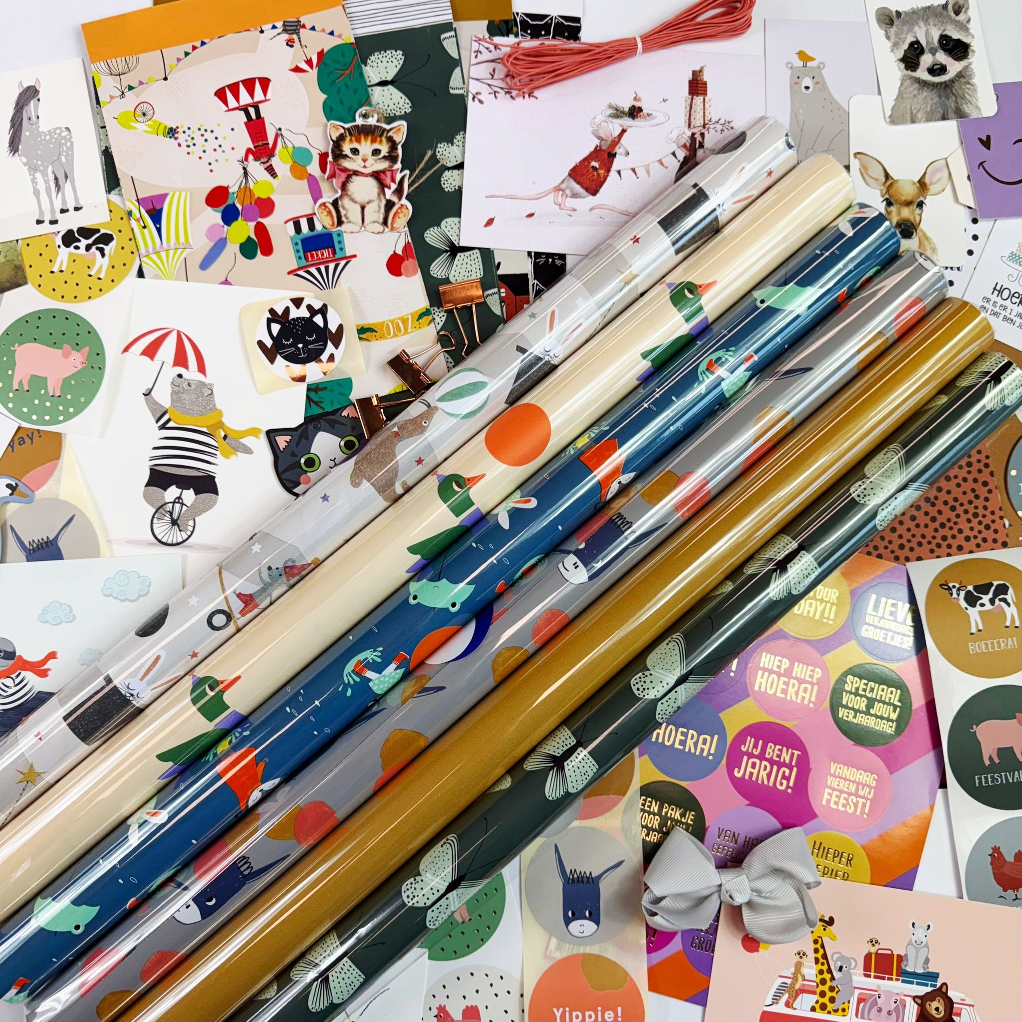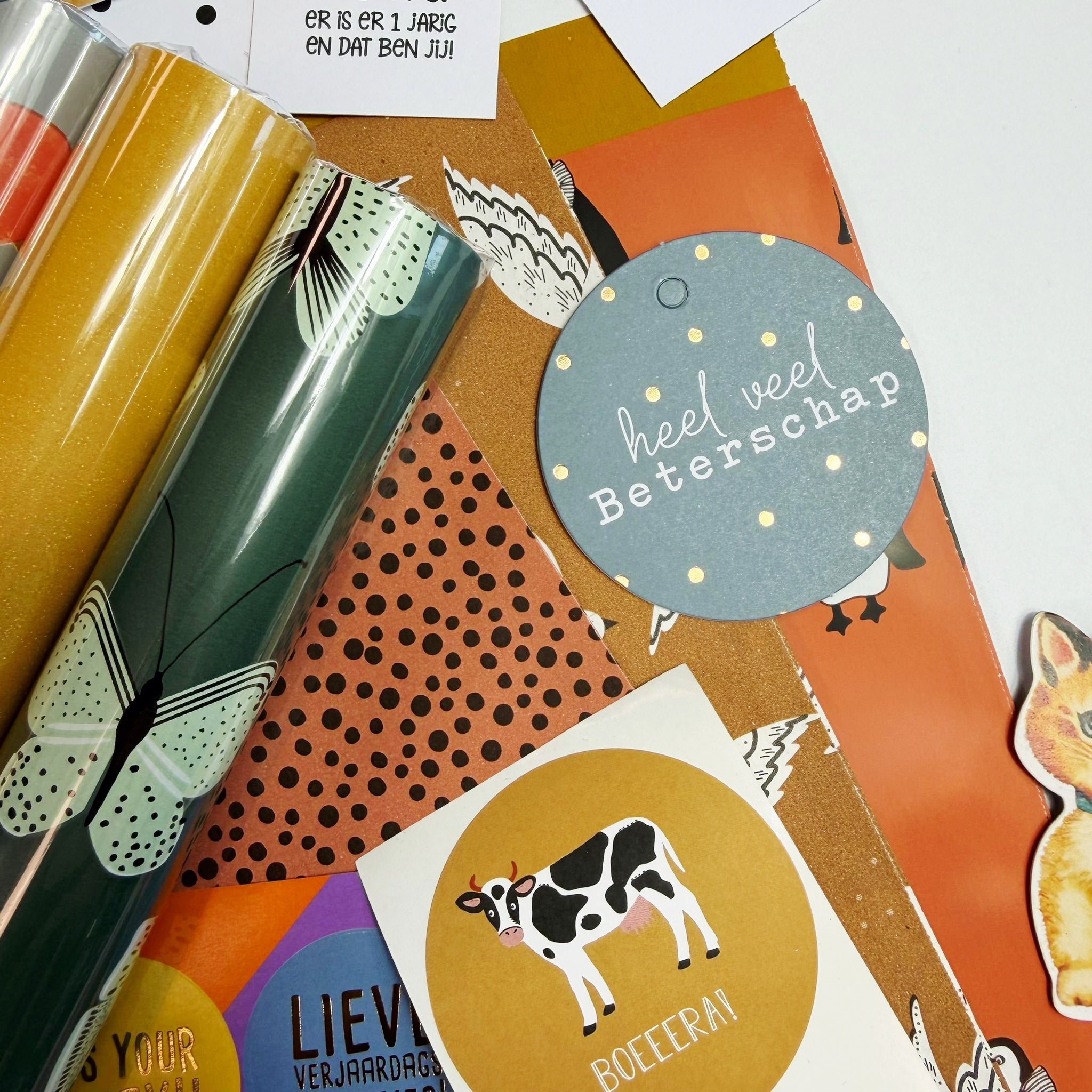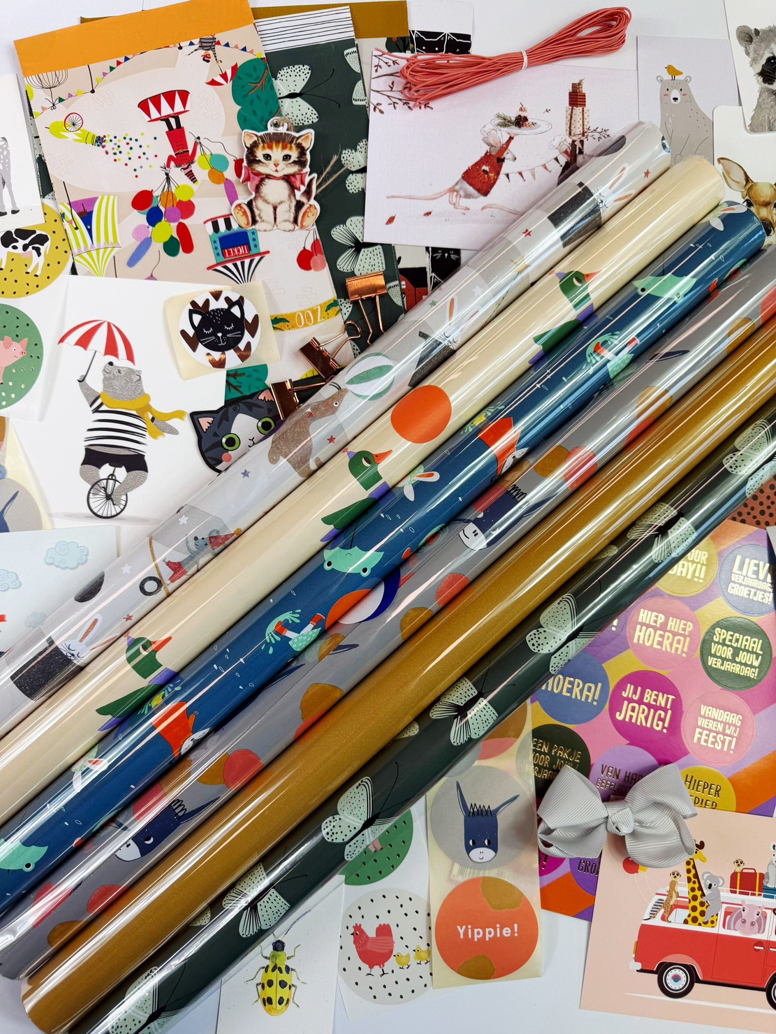 Pak een cadeautje in, kies er een kaartje of label bij en maak het helemaal af. Alles past bij elkaar, dus je hoeft niet meer te zoeken of te combineren.