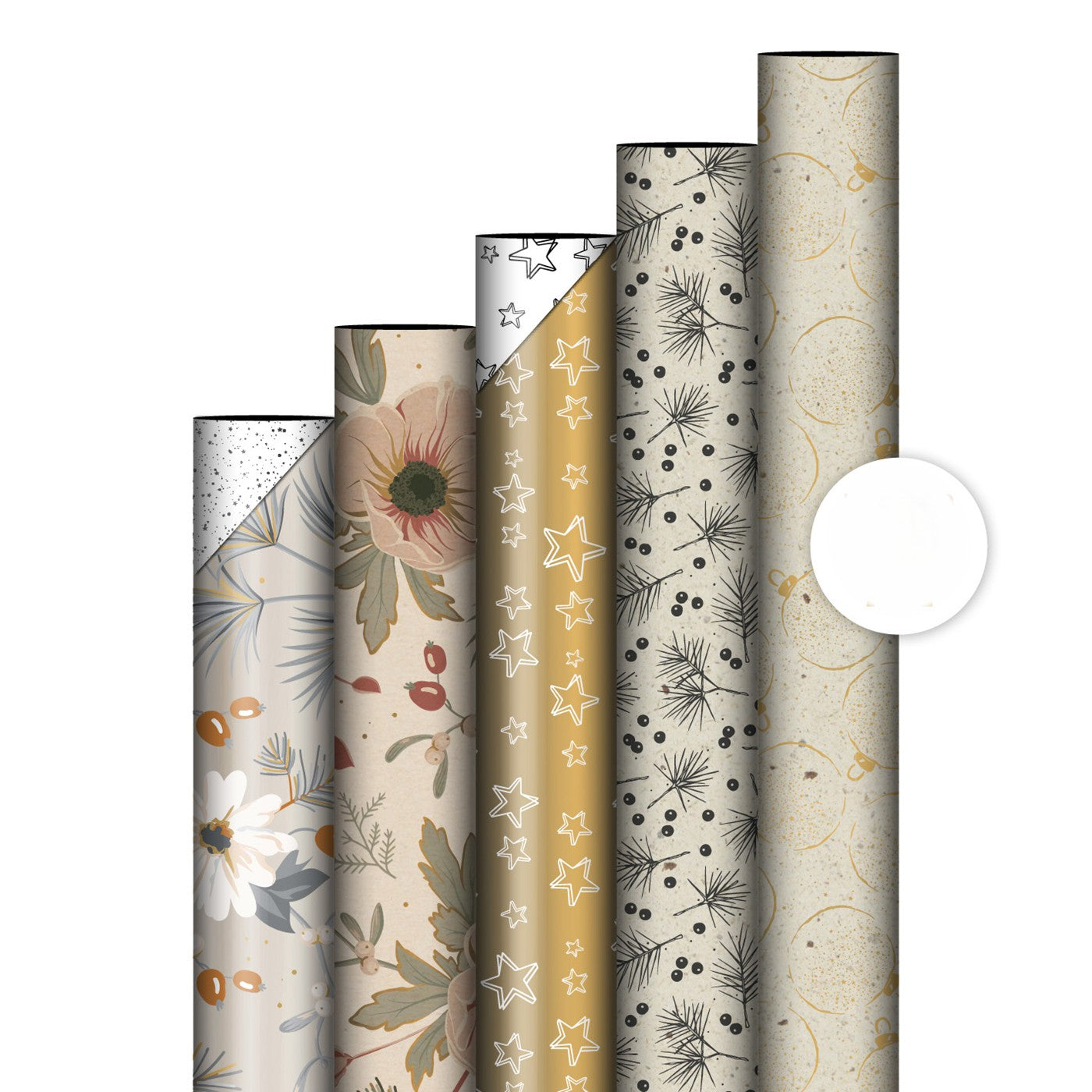Kerst papier | combipakket Naturel, BASICS - 5 rollen van 50 cm x 3 m