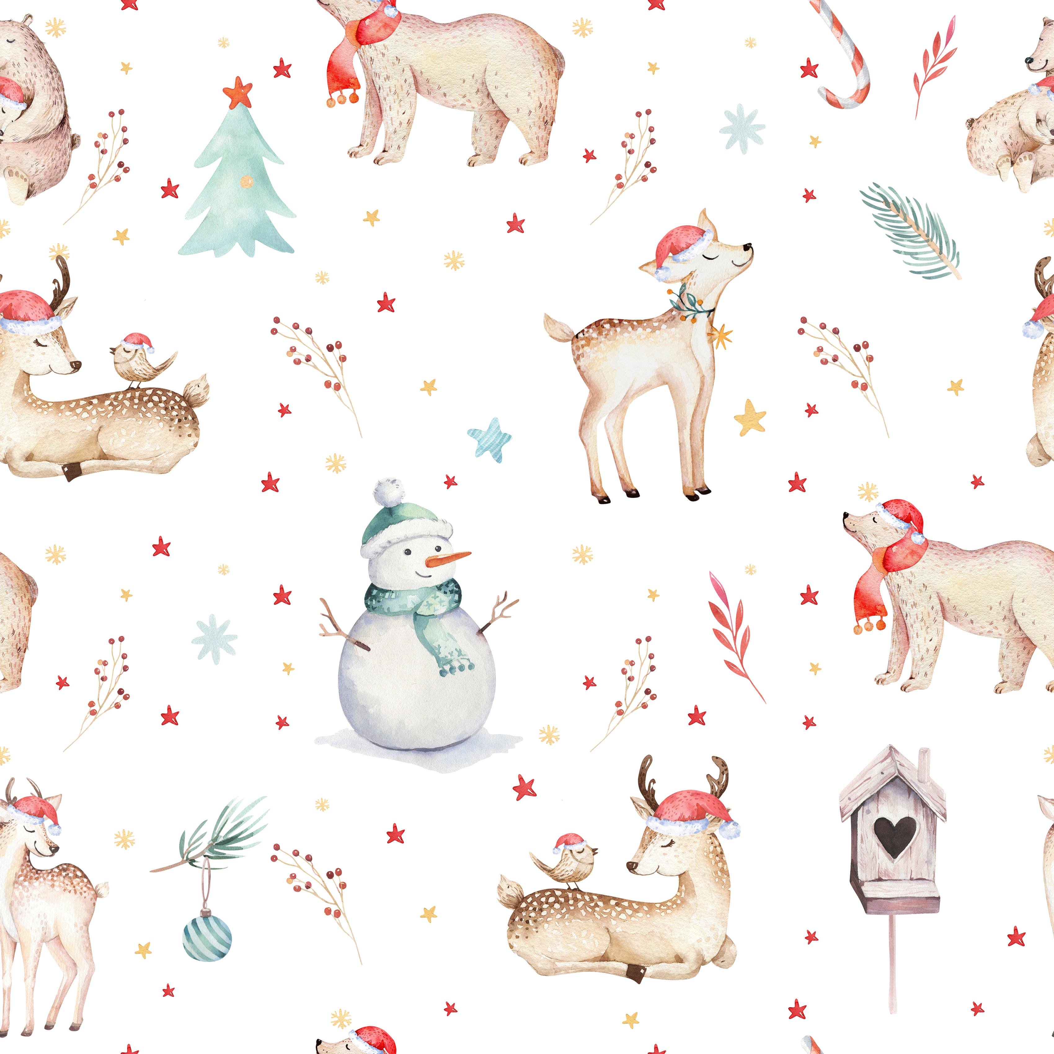 Kerst papier | wit, Forrest Animals - 1 rol van 50 cm x 2 m