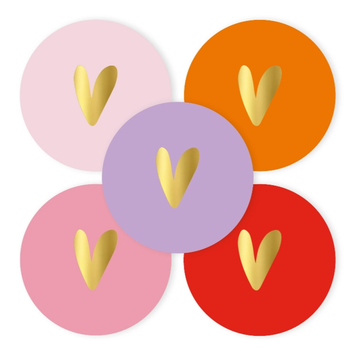 stickers/sluitzegels hartjes ♥ | rond, mix Hart van Goud – 10 stuks