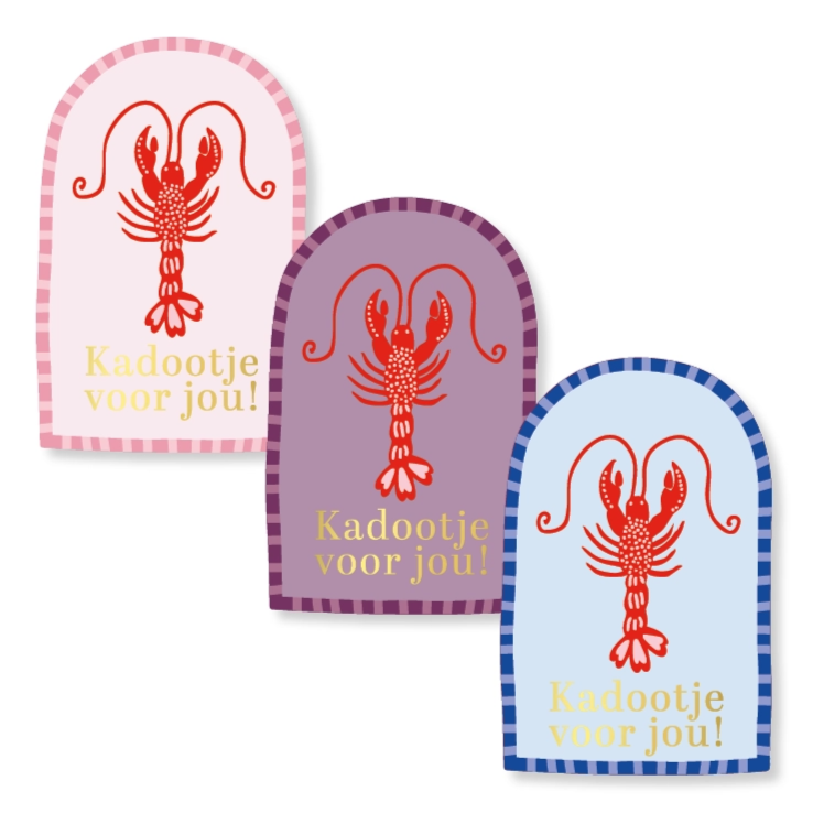 stickers/sluitzegels | boogje, mix Lobster, Kadootje Voor Jou! - 12 stuks
