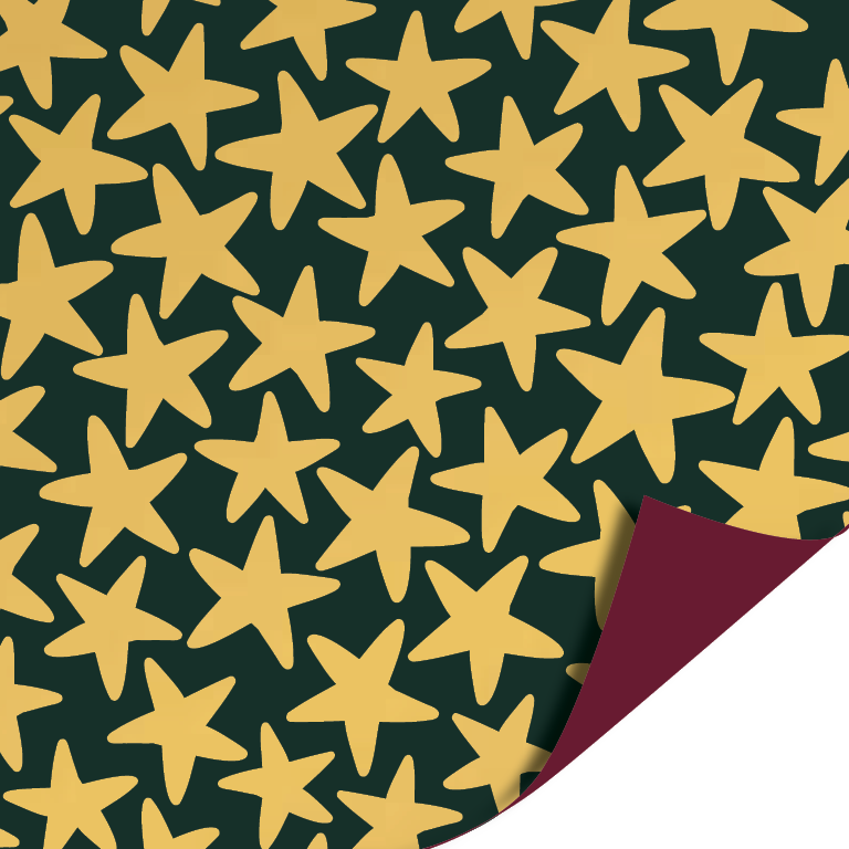 papier | donkergroen en burgundy, Big Stars - 1 rol van 50 cm x 2 m