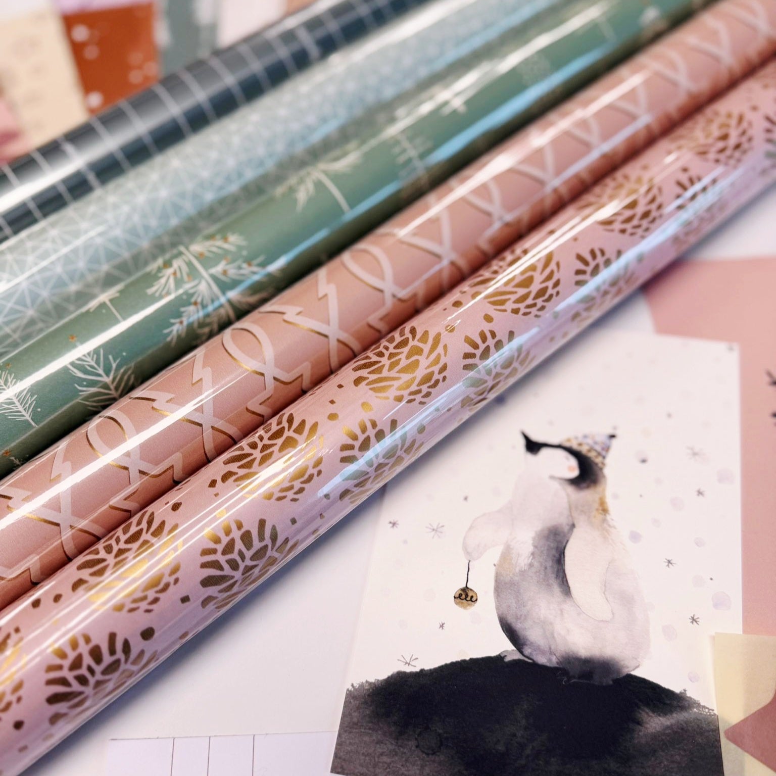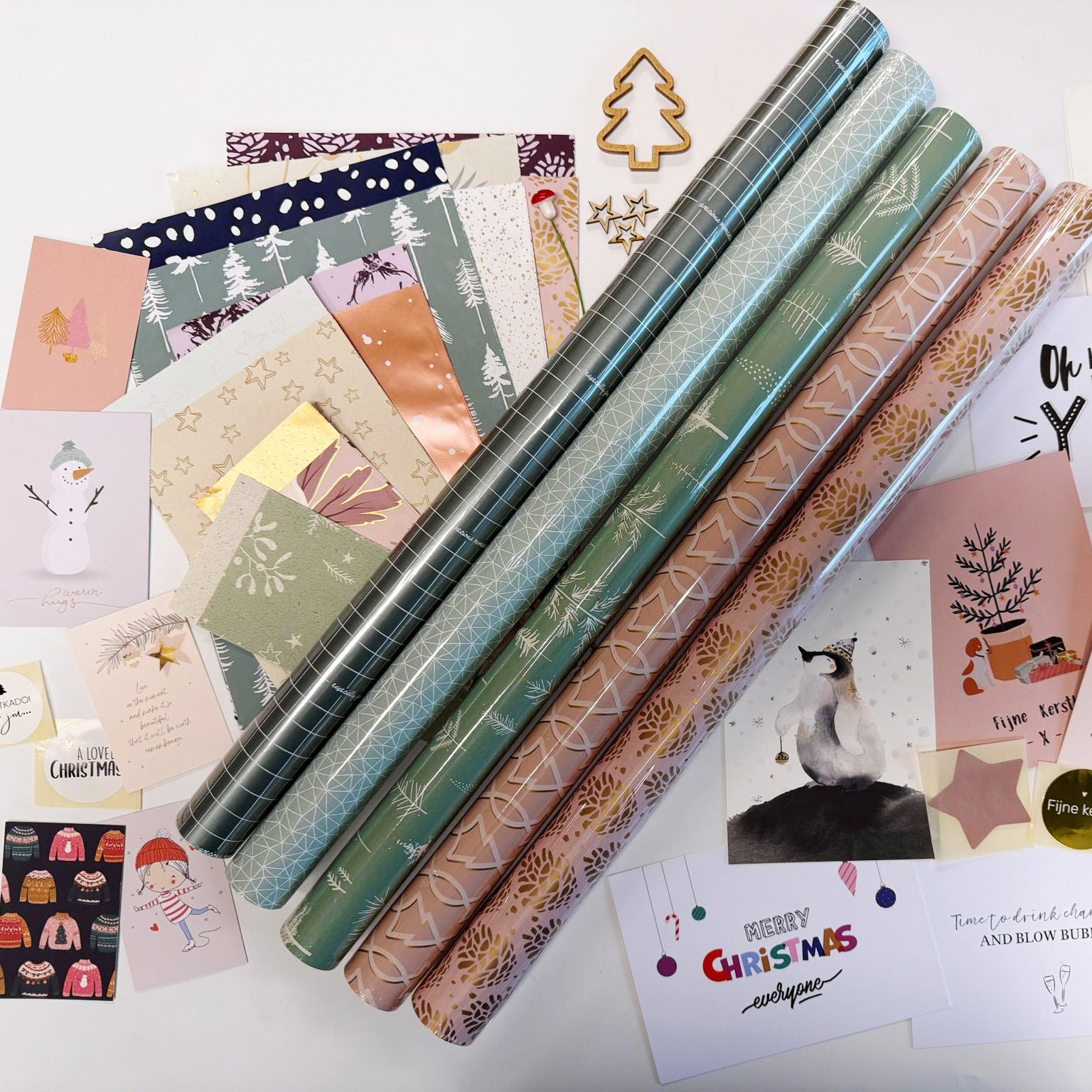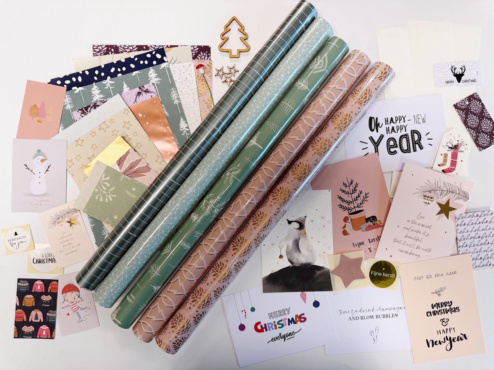 In deze set zitten rollen cadeaupapier, zakjes, kaarten, mini kaarten, stickers en overige decoratie. Een setje waarbij alles is afgestemd op de rollen papier.