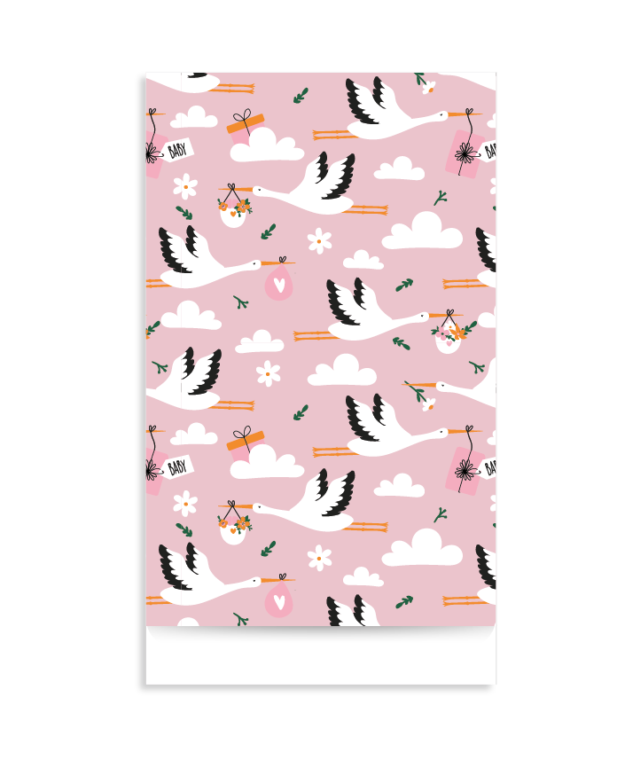 vlak zakje M | roze, Ooievaars - 5 stuks